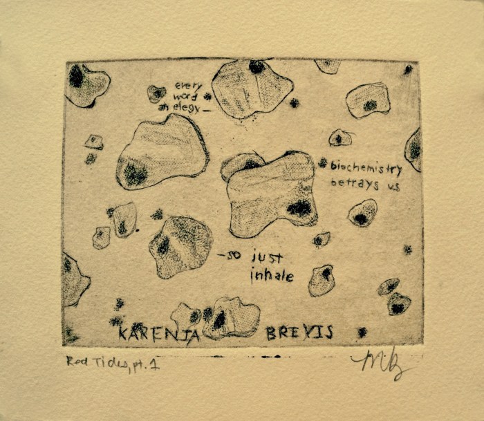 “It was a long spiral back to the bottom from the surface of the tide, and now it is not a confession I am choking on, but karenia brevis, bitter on my tongue. I am dragged beneath, hair tangling like red seaweed in the water, and it occurs to me that this has been destined all along.”